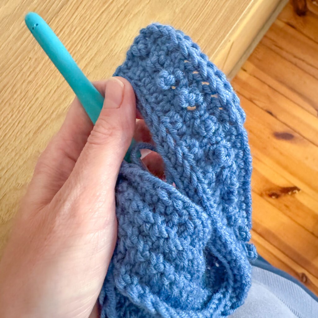 Powtarzacie: pikowany sc, sc, pikowany sc, sc… do końca rzędu 😊